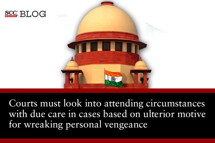 The Court said that once the complainant decides to proceed against the accused with an ulterior motive for wreaking personal vengeance, then he would ensure that the FIR/complaint is very well drafted with all the necessary ingredients to constitute the alleged offence. Therefore, in frivolous or vexatious proceedings, the Court owes a duty to look into many other attending circumstances emerging from the record of the case over and above the averments and, if need be, with due care and circumspection try to read in between the lines.